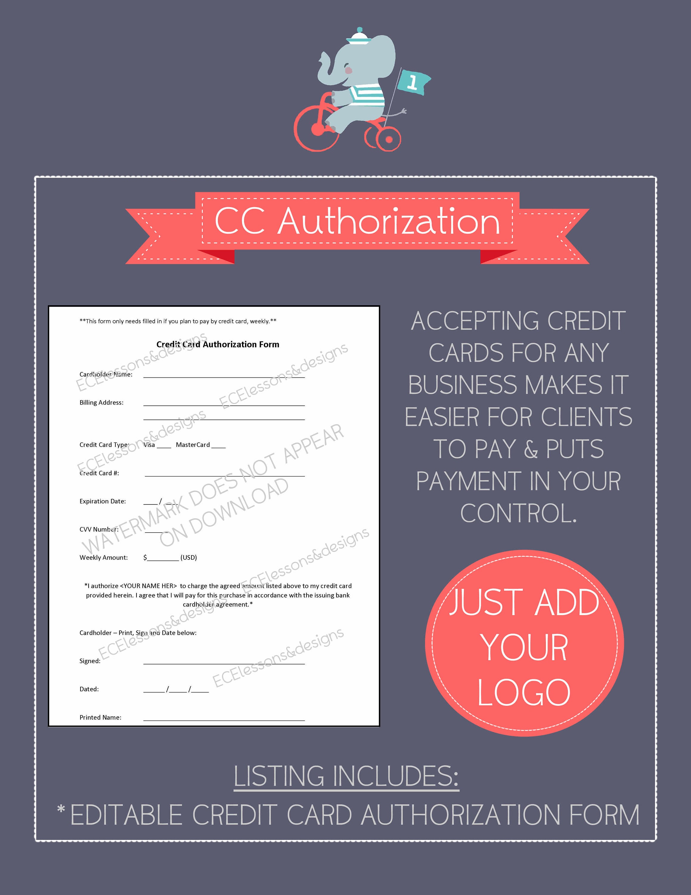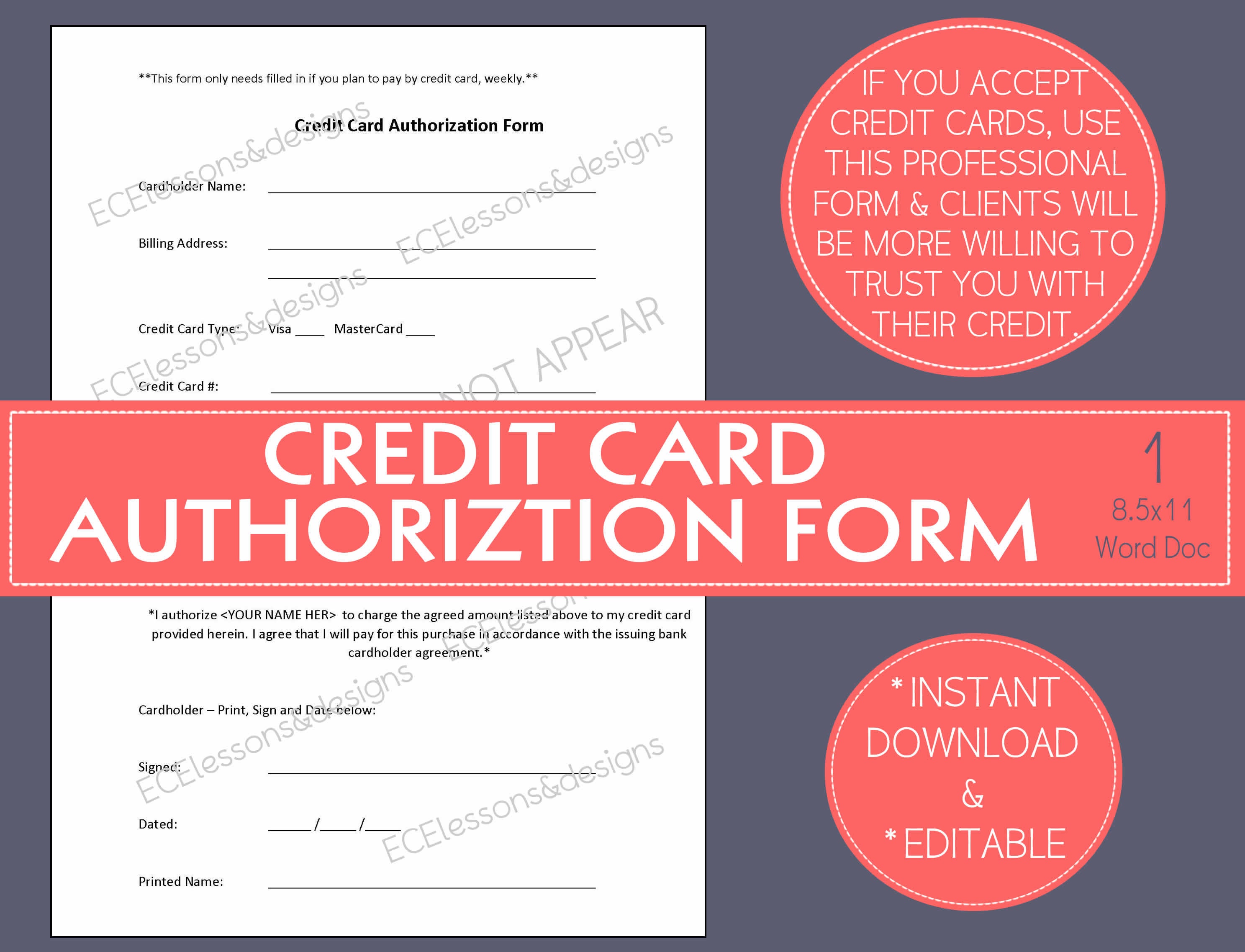 Credit Card Authorization Form Pdf Word Doc Credit Card Etsy
