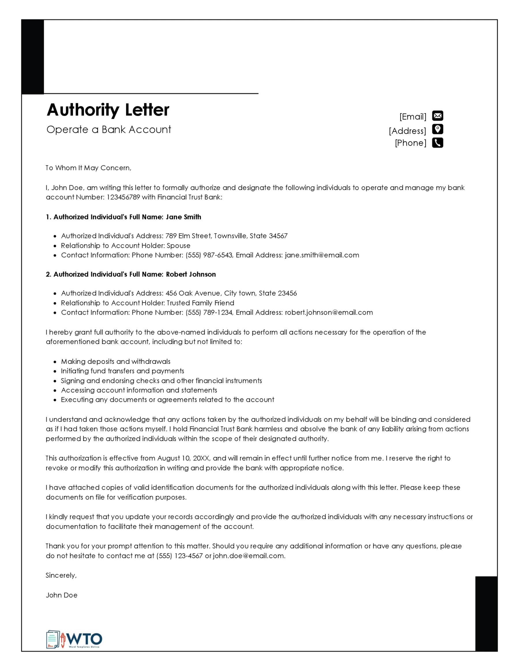 Authorization Letter To Operate Bank Account Samples
